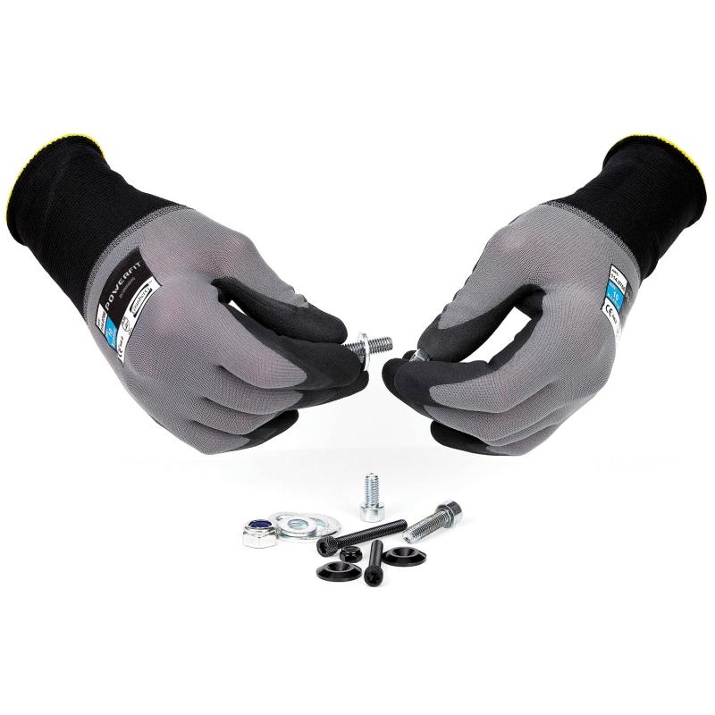 Montagenhandske i Nylon/Spandex® med mikrokapillär nitrilskumbeläggning.