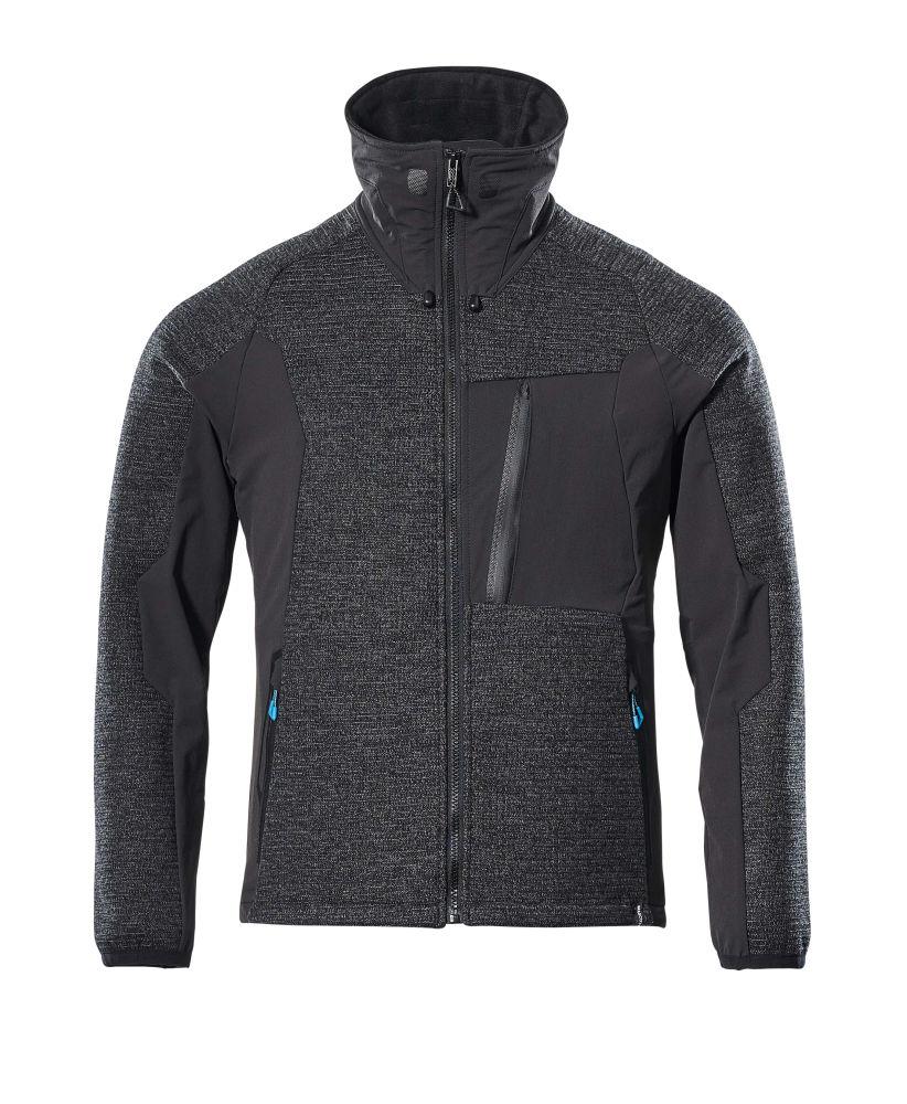 Stickad jacka med blixtlås, svart