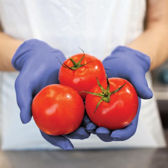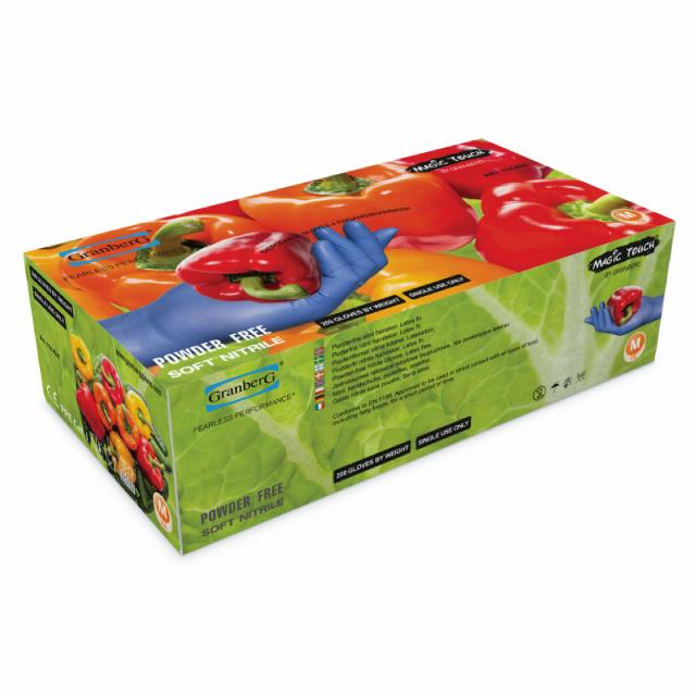 Mjukt och starkt nitrilgummi. Tunnare än handskar i motsvarande kvalitet. Likvärdig elasticitet och fingerkänsla som hos latexhandskar. Mikroruggad ytstruktur på fingertopparna för bättre grepp. Godkända för användning i direkt kontakt med alla typer av livsmedel, inklusive livsmedel med hög fetthalt (EN 1186). Vikt 3.4 ± 0,5 g.